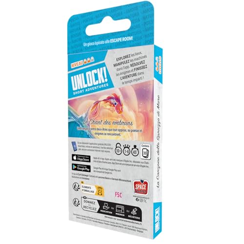 Immergiti in un’avventura incantevole con “Asmodee Unlock! Short Adventures – La Canzone dello Spruzzo di Mare”, un gioco collaborativo che trasforma la tua casa in una coinvolgente Escape Room! Unisciti ai tuoi amici per esplorare ambientazioni affascinanti, dove ogni angolo nasconde indizi e sorprese. Riscopri il potere della collaborazione mentre risolvete rebus ed enigmi per raggiungere la vittoria prima che il tempo scada. Grazie all’app gratuita per iOS e Android, vivrete un’esperienza ancora più immersiva: gestite congegni, esplorate luoghi incantevoli e lasciatevi trasportare da una storia d’amore unica tra due animali opposti, avvolta in poesia e mistero. Preparati a un viaggio emozionante, dove ogni momento conta e le risate e la tensione si intrecciano in un’avventura indimenticabile!