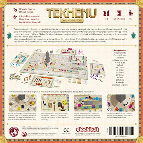 Scopri l'antico Egitto come non l'hai mai fatto prima con Tekhenu: L'Obelisco del Sole, un gioco da tavolo intrigante e strategico che ti trasporterà indietro nel tempo. Perfetto per gli appassionati di giochi di costruzione e di strategia, Tekhenu offre una combinazione unica di meccaniche innovative e decisioni complesse, ideale per serate in famiglia o con amici appassionati di sfide intellettuali.