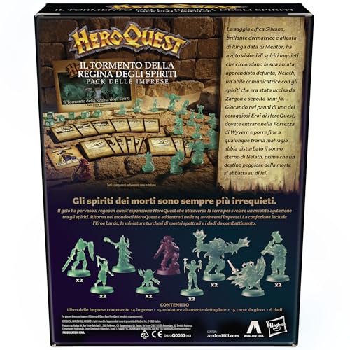 Preparati a vivere un’avventura mozzafiato con “HeroQuest: Il Tormento della Regina degli Spiriti”! Questa espansione entusiasmante trasforma il tuo sistema di gioco base HeroQuest in un’esperienza ancora più avvincente, ricca di misteri e sfide. Indossa i panni dell’eroe bardo e intraprendi una missione per svelare i tormenti degli spiriti e fermare i piani malefici di Zargon. Con le sue 15 carte da gioco e un libro delle imprese che ti immergerà in paesaggi spettrali, ogni sessione di gioco è un’opportunità per esplorare luoghi pericolosi e affrontare avversari temibili. Accresci la tua collezione con 15 miniature dettagliate, tra cui l’eroe bardo e un inquietante mostro turchese. Con 14 imprese avvincenti scritte da Teos Abadia, potrai scoprire tesori, incantesimi e segreti magici. E non dimenticare: la tua avventura può continuare all’infinito! Crea le tue storie e sfida i tuoi amici in un mondo dove il limite è solo la tua immaginazione. Non perdere l’opportunità di espandere il tuo universo HeroQuest!