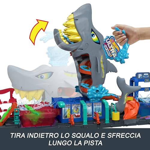 Scopri l’avventura con il Mega Squalo Autolavaggio di Hot Wheels! Questo set unico, ispirato a Netflix, offre emozionanti funzioni di cambio colore. Guarda le tue auto trasformarsi con l’acqua calda mentre sfuggono dalle fauci dello squalo. Perfetto per ore di gioco creativo e avvincente, è l’ideale per i piccoli appassionati di azione e velocità.