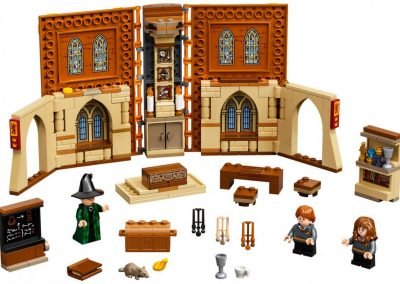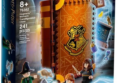 Hogwarts™ Transfiguration Lesson (76382) LEGO® Harry Potter™ is the set dedicated to the Gryffindor house and includes the classroom where Professor McGonagall conducts her Transfiguration lesson. A blackboard, two desks, two chairs, a chest, a locker, a spellbook, and other accessories complete the set alongside the minifigures of Miranda McGonagall, Ron Weasley, and Hermione Granger.