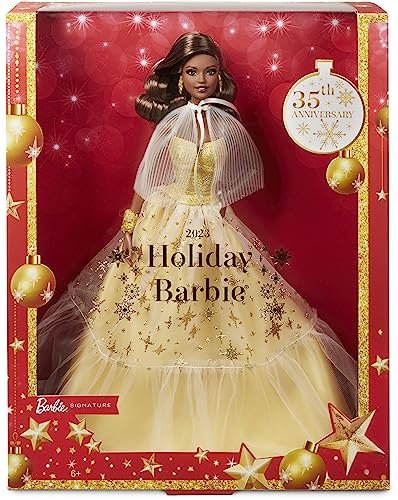 Welcome, Barbie enthusiasts and collectors, to the dazzling world of collectible dolls. We’re thrilled to introduce the latest addition to our affiliate site: the Barbie – Signature: Barbie Holiday Magic 2023, dressed to impress with luscious dark brown hair and an enchanting golden gown. This doll isn’t just a collectible—it’s a ticket to Barbie’s magical universe, where elegance and style come together to create a truly unique experience.