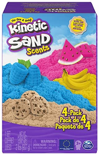 Each Kinetic Sand Scented Sand Pack, 908g, includes four 227g bags, each featuring one of these delightful scents and colors: cookie (light brown), banana (yellow), watermelon (pink), and berries (blue). A perfect variety to invite children to explore new textures and stimulate creative, multisensory play.
