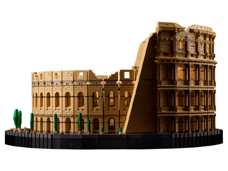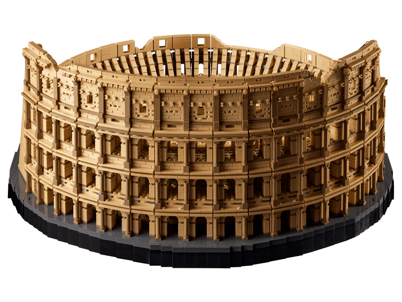Nowhere on Earth matches the grandeur of the Colosseum in Rome, the world’s largest amphitheater—construction of which began under Emperor Vespasian in 70 CE and was inaugurated by his son Titus in 80 CE. Builders will find a welcome escape from daily routine as they assemble the largest LEGO set ever released (as of November 2020). This monumental 9,036-piece Colosseum model faithfully recreates every detail of the iconic structure. Authentic details highlight the north façade of the outer wall and its legendary arches. The model features three tiers adorned with Doric, Ionic, and Corinthian columns, while the attic level is decorated with Corinthian pilasters.