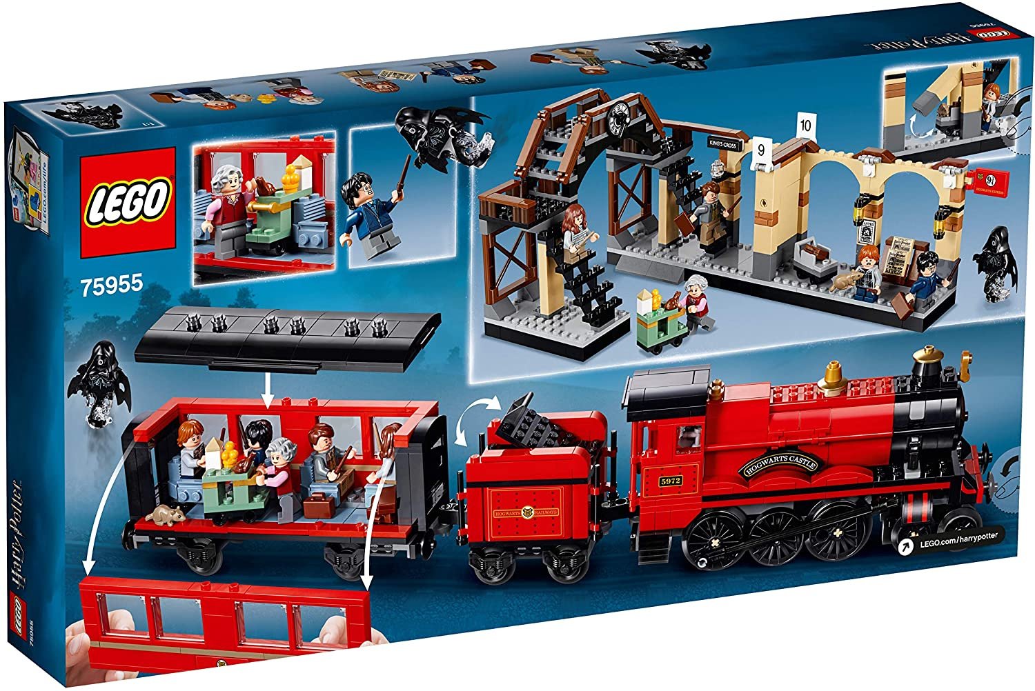 Includes 5 minifigures: Harry Potter™, Ron Weasley™, Hermione Granger™, Remus Lupin, and the Witch with the Trolley—plus a Dementor and Scabbers.
