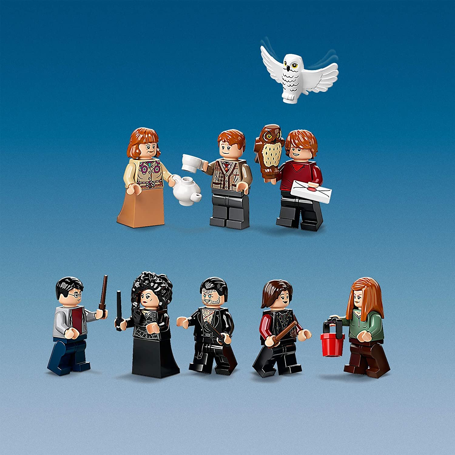 It includes 8 LEGO® minifigures—Ron, Ginny, Arthur, and Molly Weasley™, Nymphadora Tonks, Bellatrix Lestrange, Fenrir Greyback, and Harry Potter™—plus countless features, functions, accessories, and special flame elements.