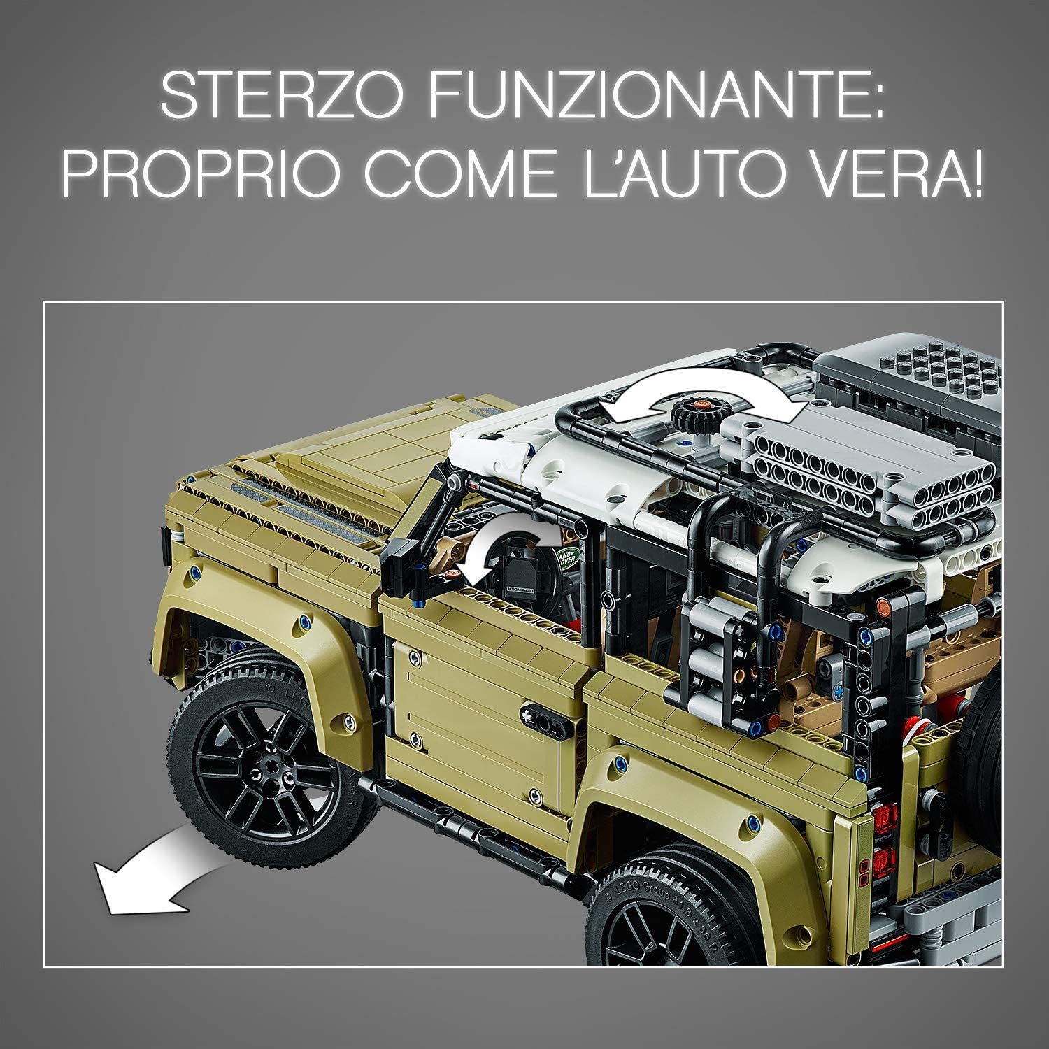 The LEGO® Technic Land Rover Defender 42110 is a highly realistic display model that showcases the design of one of the world’s most iconic automotive brands. Developed in collaboration with Land Rover, this stunning LEGO replica captures the vehicle’s exceptional sophistication—featuring sleek, modern lines; finely textured surfaces; uniquely styled wheels with high-grip tires; and numerous authentic details and functional elements. The doors open to reveal an intricately detailed interior, including a working steering wheel, a highly detailed dashboard, and a dual-lever transmission system (a new feature introduced in October 2019) for switching between high and low gears—as well as a gear selector—the most advanced LEGO Technic transmission ever created! Inside, the rear seats fold forward to expose a 4-speed sequential gearbox. But the attention to detail doesn’t stop there. This incredible replica also includes a 6-cylinder inline engine under the hood with moving pistons; full-time 4-wheel drive with three differentials; independent suspension on both axles; and a fully functional winch! The rear tailgate opens by rotating the spare tire mounted at the back. Equipped with a removable cargo carrier loaded with a storage box, a duffel bag, a ladder, and ice grips, this impressive recreation of the ultimate off-road vehicle delivers a truly immersive and rewarding building experience. The perfect gift for Land Rover enthusiasts and vintage car collectors.