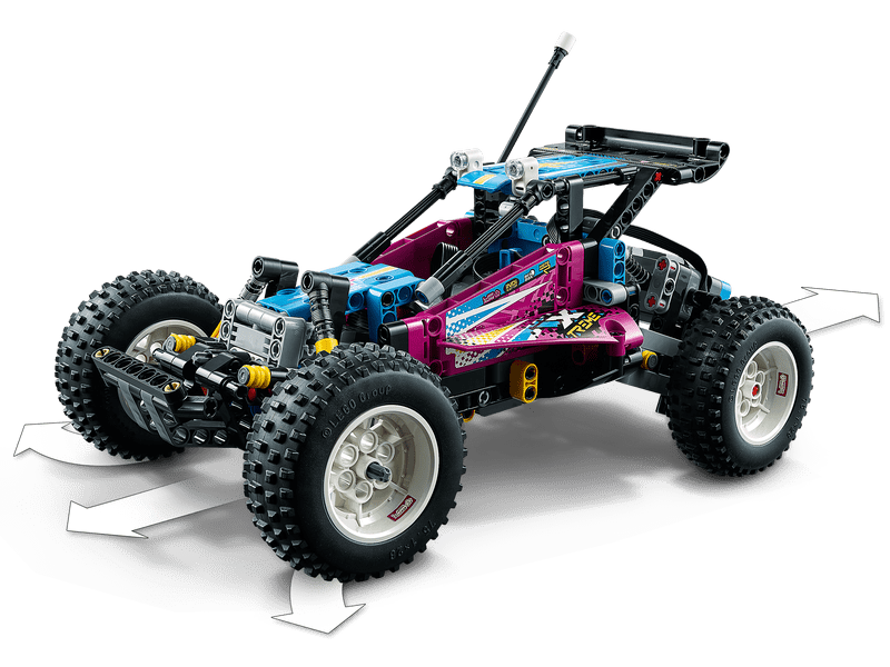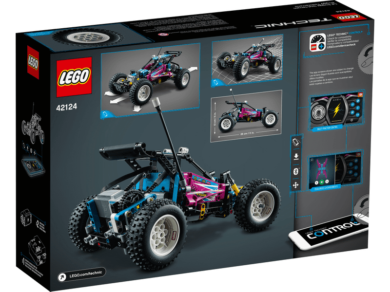 The LEGO Off-Road Buggy building set (42124) delivers hours of guaranteed fun. This radio-controlled off-road buggy is packed with features inspired by classic remote-controlled cars from the 1980s.