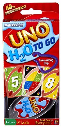 “Uno H2O To Go” by Mattel Games is a waterproof version of the beloved UNO card game—perfect for playing poolside, at the beach, or during any outdoor activity. This innovative edition lets you enjoy all the fun of UNO in any condition, without worrying about water or moisture.