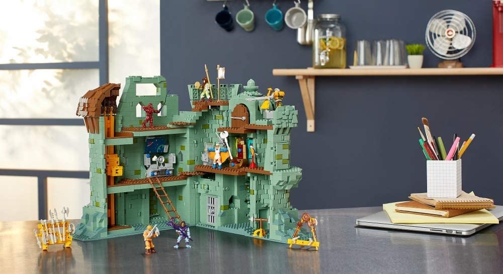 Faithfully recreated from the classic Masters of the Universe series, every detail is here—the working elevator, rotating turrets, throne room with trapdoor, and even the Jawbridge, which activates with the Sword of Power! Assemble this massive fortress using over 3,500 pieces, then battle for Eternia with the six included micro action figures: He-Man, Skeletor, Man-At-Arms, Beast Man, Goddess, and Sorceress. Castle Grayskull was built to guard a mysterious source of power—and now you can build it yourself!
