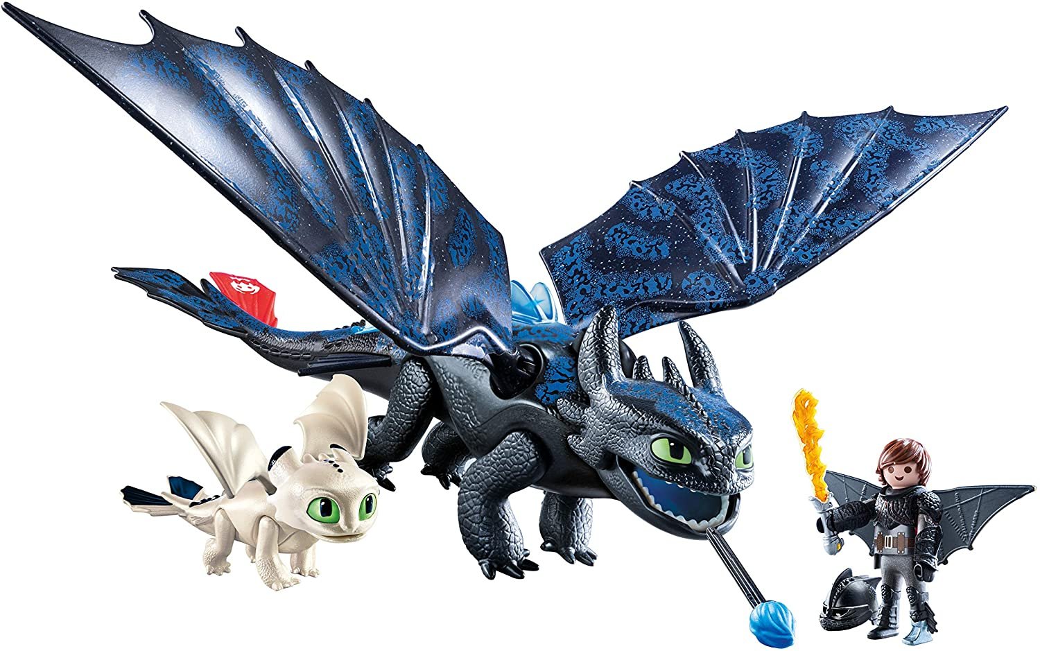In the epic finale of the beloved dragon saga, How to Train Your Dragon 3: The Hidden World, Toothless and Hiccup face exciting new challenges and dangers. A mysterious new enemy threatens not only the Vikings and the island of Berk—but all dragons everywhere. But just when things look dire, unexpected help arrives in the form of Light Fury. With her appearance, it becomes clear that Toothless is no longer the last Night Fury on Earth. One of the best-selling sets from Playmobil’s new Dragons line inspired by How to Train Your Dragon.