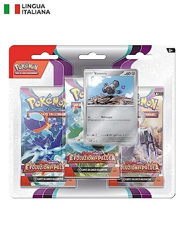 Welcome, Trainer! Get ready to dive into the captivating world of Scarlet & Violet – Paldea Evolved with our Pokémon TCG Booster Pack Bundle (Varoom), fully localized in Italian. A special surprise awaits you: inside, you’ll find not only three exciting booster packs—but also a promotional holographic card of Varoom!