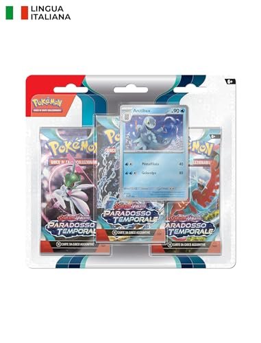 Plus, uncover the exclusive foil Arctibax card and redeem the included code card to bring your collection into the digital world of Pokémon TCG Live. Strictly Italian-language edition—this Scarlet & Violet Booster Pack is the perfect choice for an epic, boundary-defying Pokémon adventure across time itself!