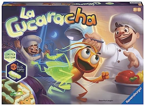 Step into the fun world of La Cucaracha, now with a thrilling nighttime twist! To celebrate its 10th anniversary, Ravensburger presents the special Glow in the Dark edition—perfect for anyone who loves a challenge in the dark. Compete with friends and family to catch the cunning cockroach as it scurries around the kitchen, using the original HEXBUG nano. Choose between two exciting game modes: the classic race to trap the speedy insect or the new, captivating hunt in the darkness. Designed for players aged 5+, this game is ideal for 2–4 participants. Get ready to laugh—and dodge La Cucaracha—in this glowing, action-packed edition!