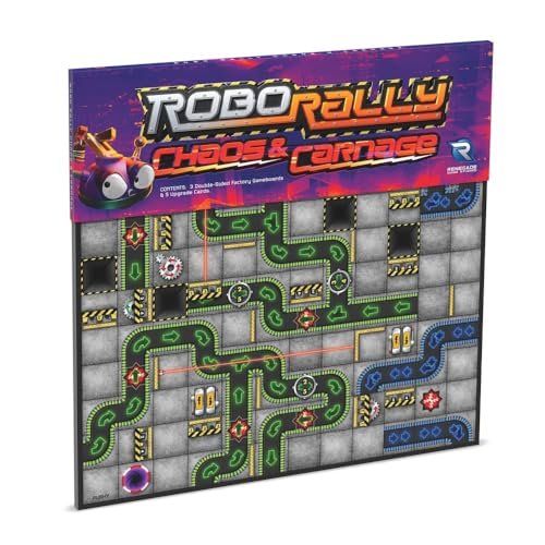 Get ready for an unprecedented gaming experience with “Robo Rally: Chaos & Carnage,” the must-have expansion for robot racing enthusiasts! This expansion transforms your game table into a frantic, unpredictable battlefield, adding 3 new double-sided boards that take variability to the next level. Face teleportation devices that will fling you right over obstacles, randomizers that inject a thrilling dose of luck, and deadly crushers that will put your robots’ resilience to the ultimate test. With 5 brand-new upgrade cards, you’ll have the chance to further customize your mechanisms and strategies. Every match becomes a unique adventure, brimming with chaos and carnage—where only the most cunning and daring players will emerge victorious. Prepare to challenge fate and experience pure adrenaline-fueled moments with this fantastic expansion!