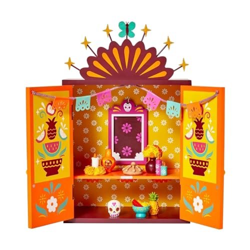Discover the enchanting “Day of the Dead Wooden Box Set for Ofrenda,” a work of art that celebrates Mexican tradition with elegance and reverence. This beautifully crafted ofrenda box, adorned with vibrant colors and intricate designs, becomes a captivating decorative piece that honors the memory of your beloved departed. Measuring approximately 13 x 9 x 3.5 inches, it offers ample space to display photos and small commemorative items, transforming into a unique memorial during Dia de los Muertos celebrations. Crafted from high-quality wood, its sturdy construction ensures lasting durability, while the finely painted interior featuring Mexican motifs adds a touch of originality. Complete your altar with the included accessories—such as vases, candles, and skulls—for a personalized expression that reflects your own style. Bring home a piece of tradition and beauty with this wooden box set, perfect for commemorating and celebrating life!