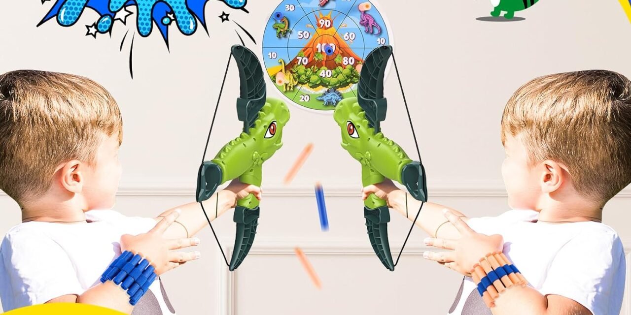 The Dinosaur Bow and Arrow children’s toy is recommended for children between the ages of 5 and 12.